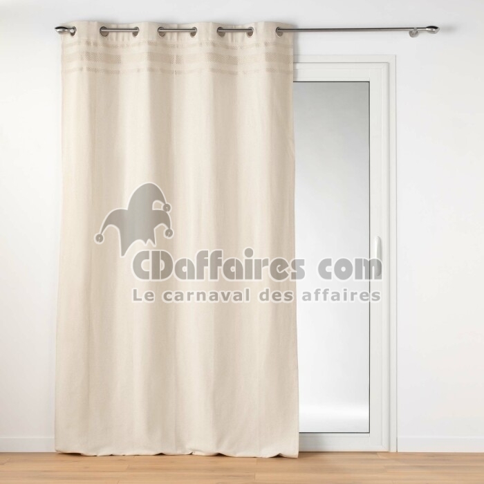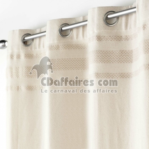 Rideaux > Succombez au charme de notre rideau écru 100% coton jacquard avec son haut décoré de fils métallisé qui lui donnent un chic fou. Rideau tamisant avec. Taille 140 x 240 cm.