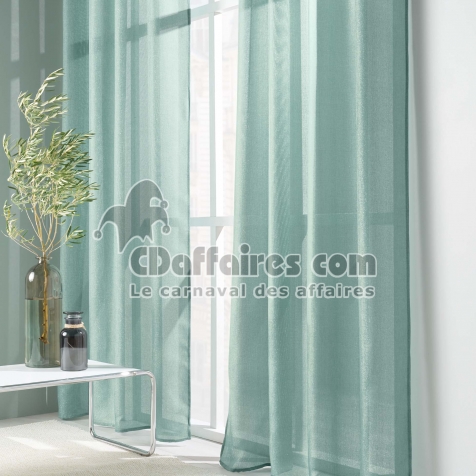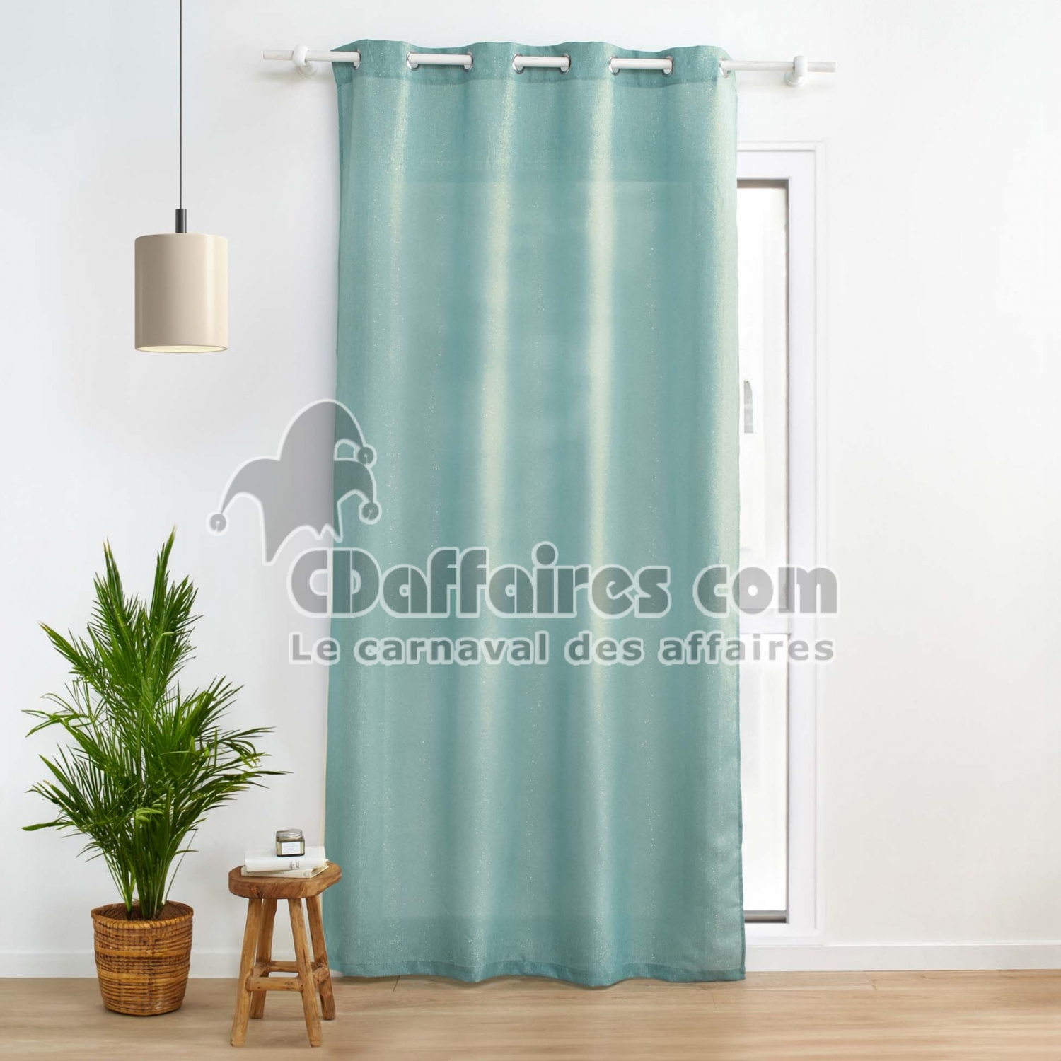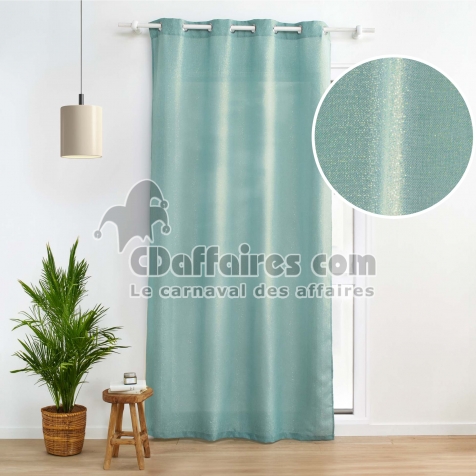 Rideau a oeillets 140 x 280 cm polyester uni+fils metallises zeline Sauge - CDAffaires