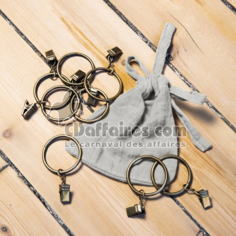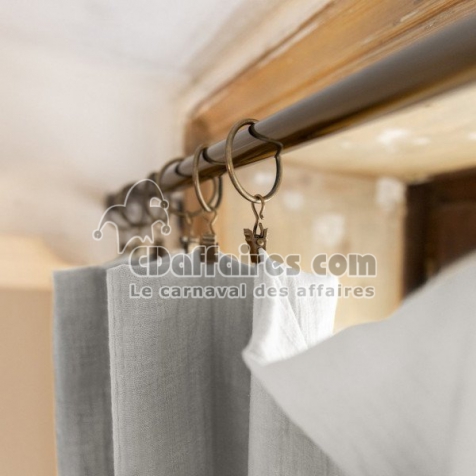 Rideau ajustable + 8 anneaux pince gaze de coton 140 x 300 cm Gris clair - CDAffaires