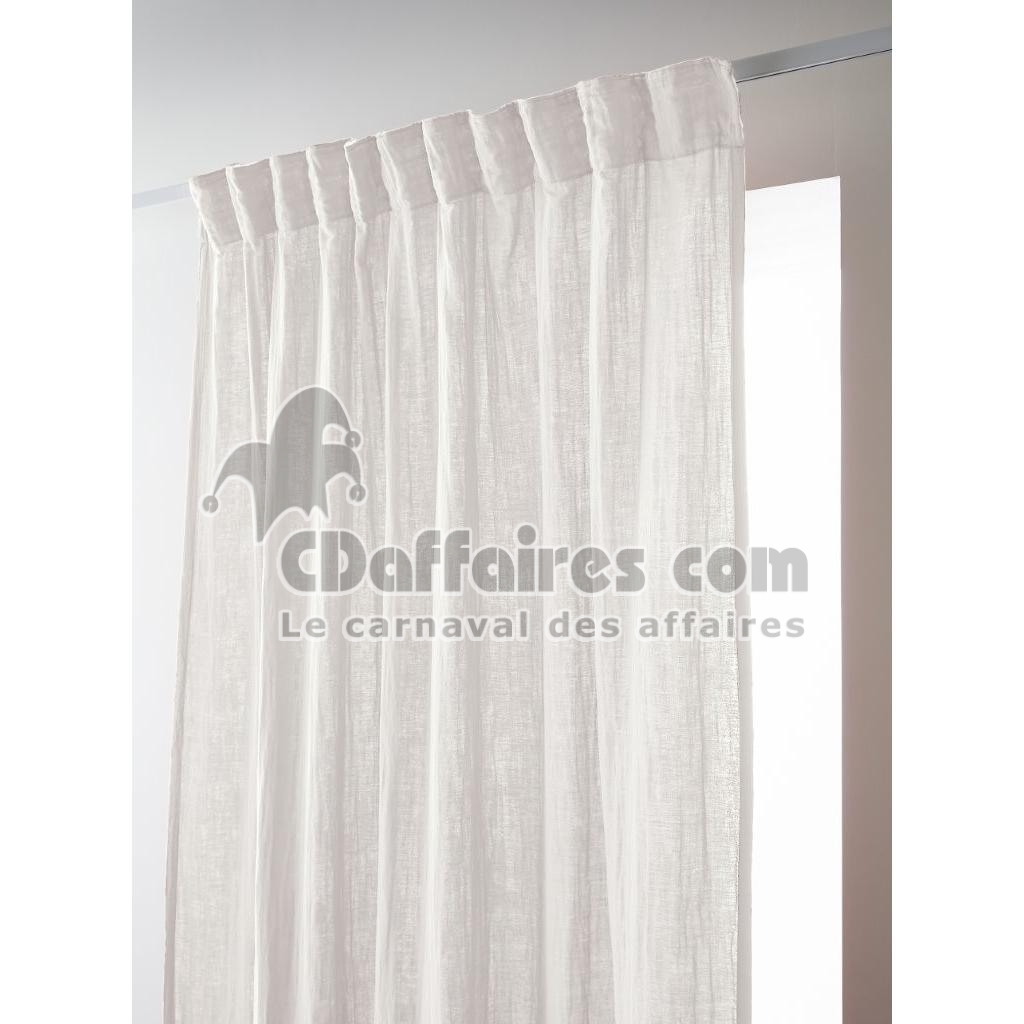 Rideau Galon Fronceur 140 x 240 cm - Double Gaze de Coton - Uni Gaïa Blanc - CDAffaires
