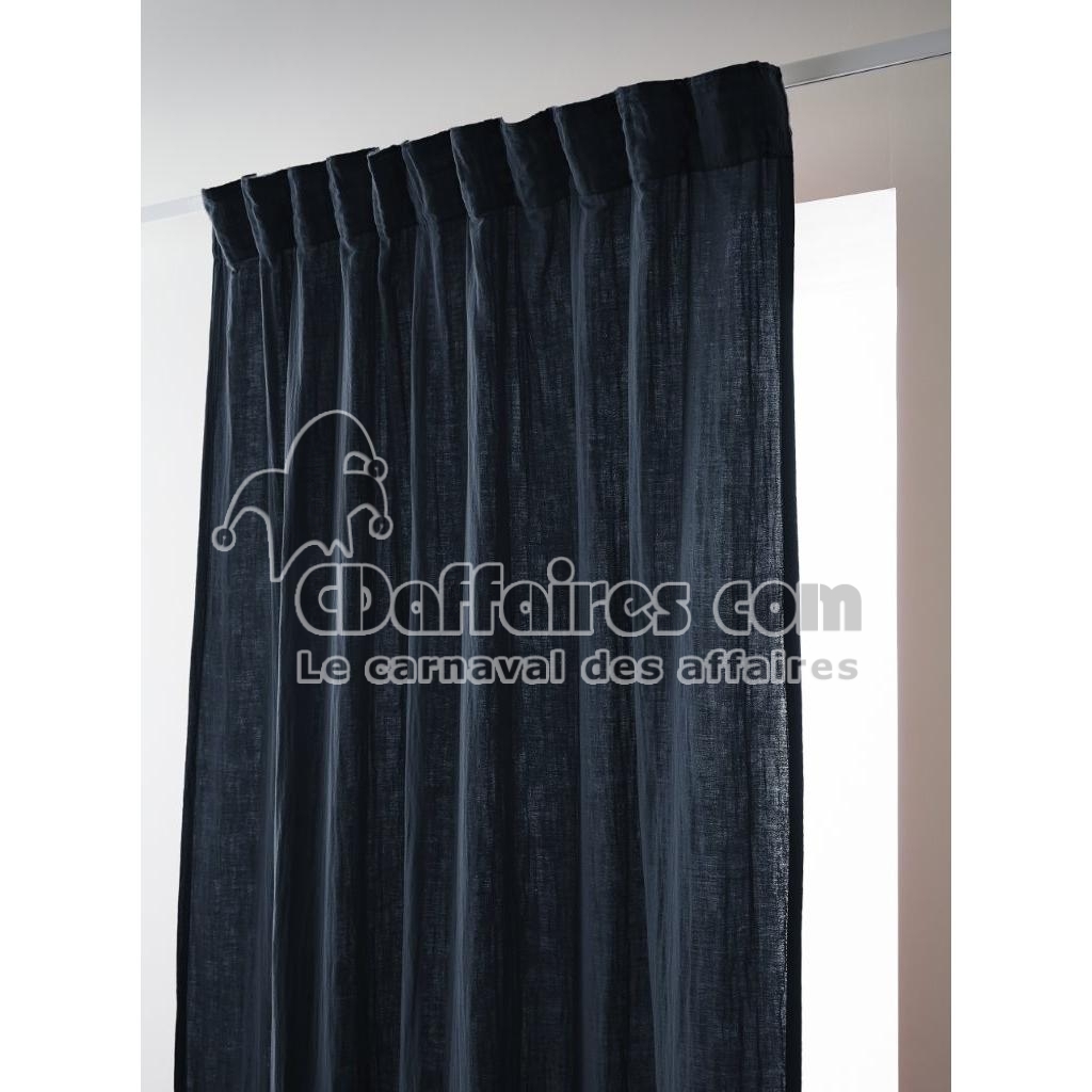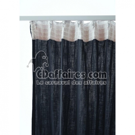 Rideau Galon Fronceur 140 x 240 cm - Double Gaze de Coton - Uni Gaïa Minuit - CDAffaires