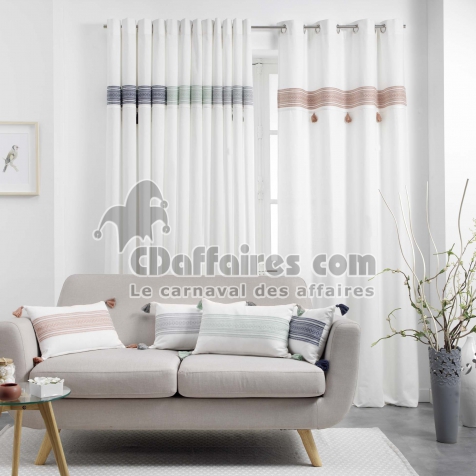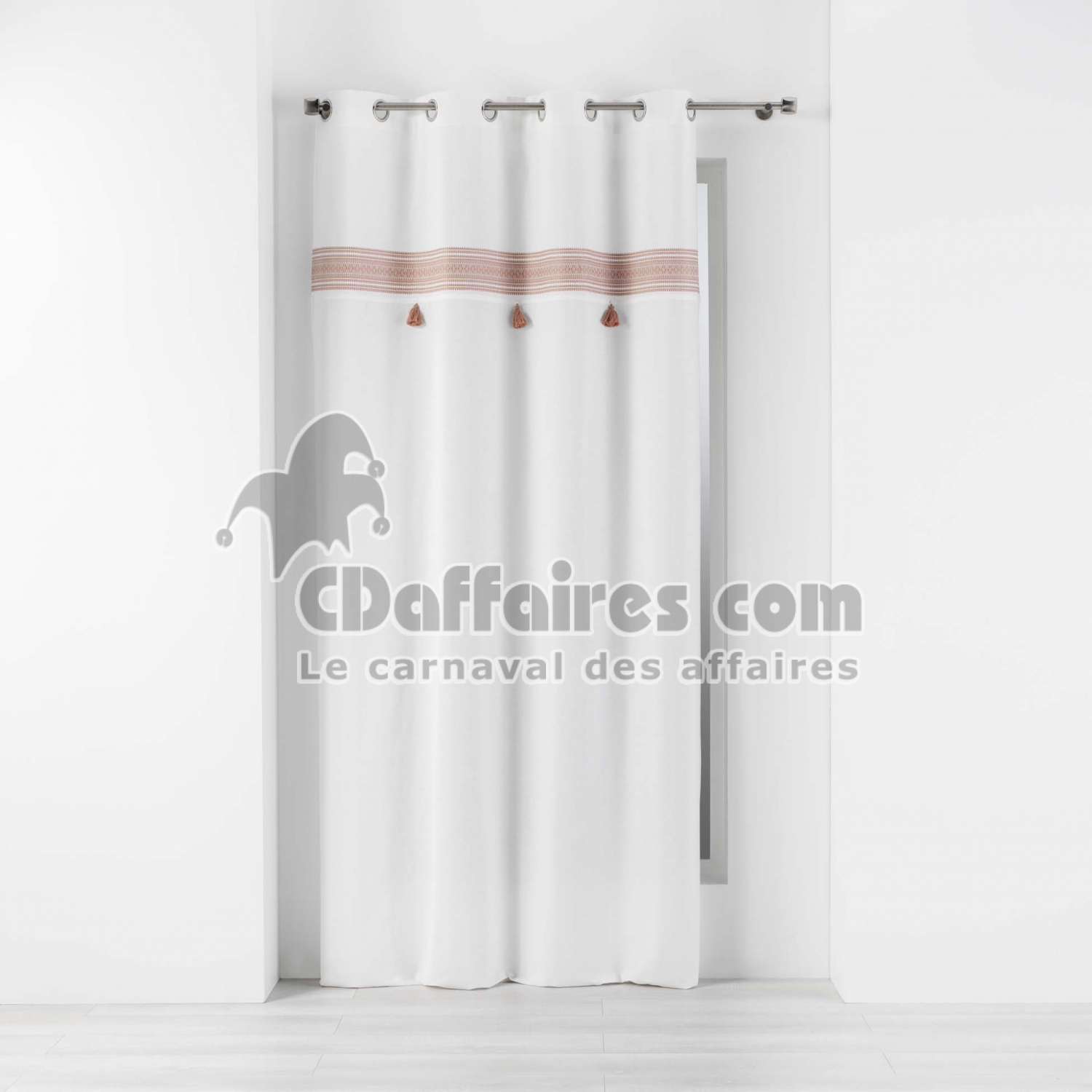 Rideaux > Sublimez vous fenêtre avec le Rideau 140 x 240 cm 100% coton brodé avec frange pompons Rose. Élégant et sobre, ce rideau tamisant en pur coton embellira
