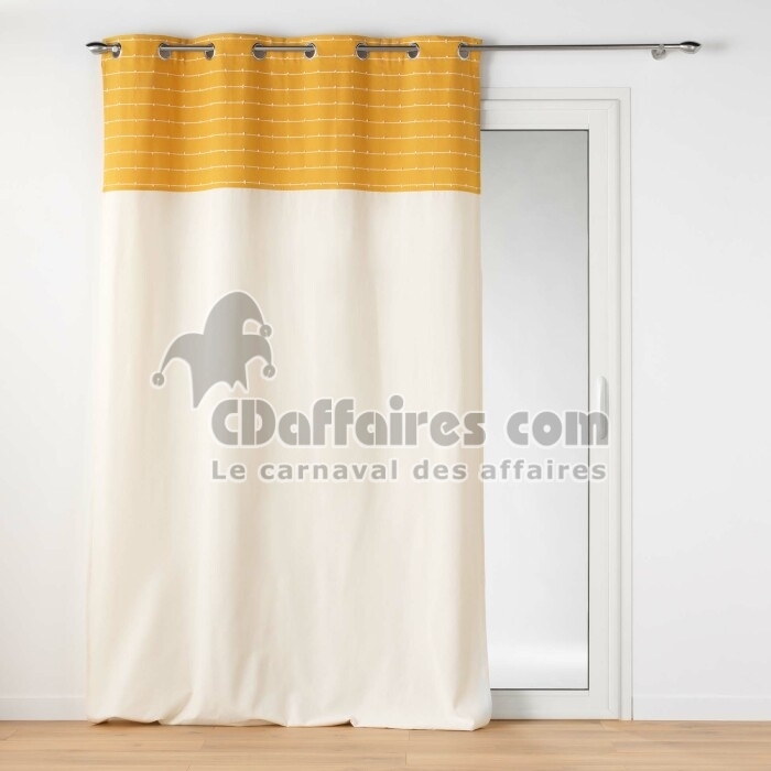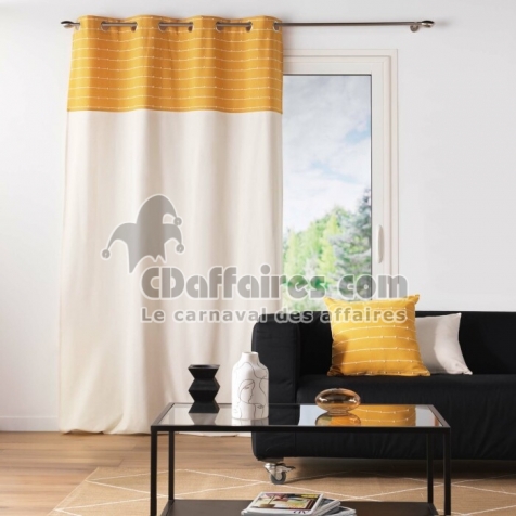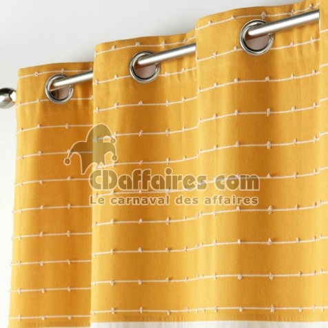 Rideau tamisant 140 x 240 cm coton recyclé + fils coupés Linechic Jaune - CDAffaires