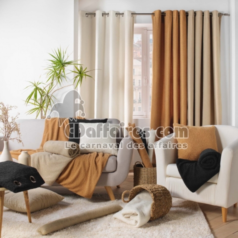 Rideaux > Apportez une ambiance cocooning et chaleureuse à votre intérieur avec le rideau à œillets Wooly en coloris noir. Fabriqué en tissu bouclette doux et