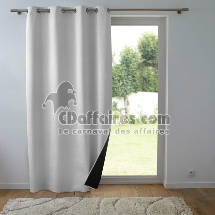 Rideau thermique phonique 140 x 260 cm 100% occultant/velours relief shadow Perle - CDAffaires