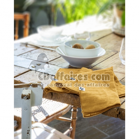 Lot de 3 Serviettes 40 x 40 cm – Double Gaze de Coton – Gaïa Safran - CDAffaires