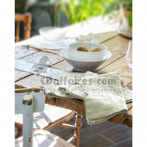 Lot de 3 Serviettes 40 x 40 cm – Double Gaze de Coton – Gaïa Vert d'eau - CDAffaires