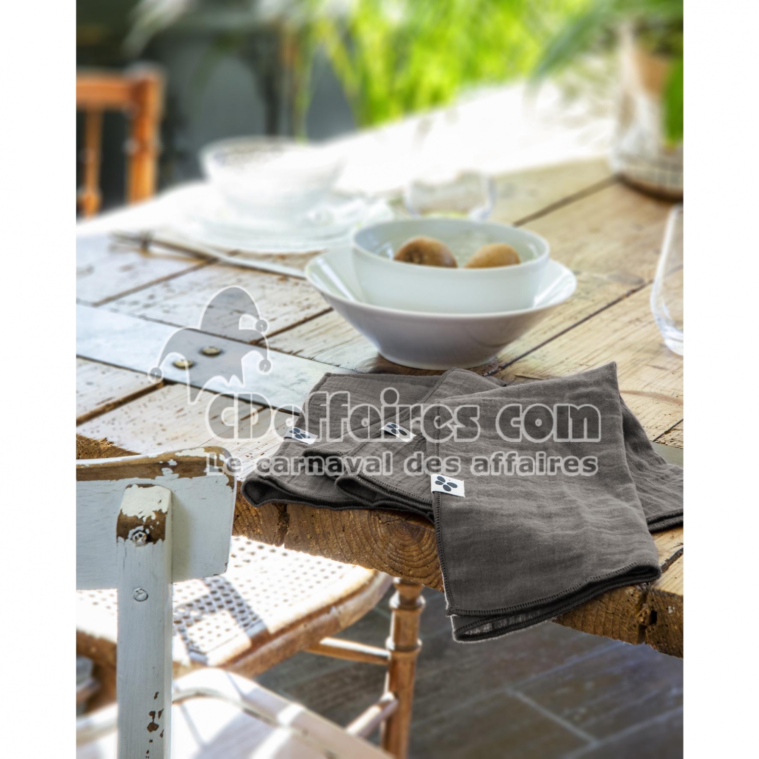 Serviettes de table > Lot de 3 serviettes gaze de coton 40 x 40 cm gaia granit Anthracite. Taille 40 x 40 cm.
