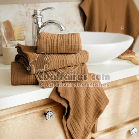 Apportez une touche de douceur et d’élégance naturelle à votre salle de bain avec la serviette invité Gaïa en quadruple gaze de coton unie. Son tissage aérien lui confère une texture délicatement gaufrée, à la fois légère, souple et agréable au toucher.