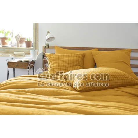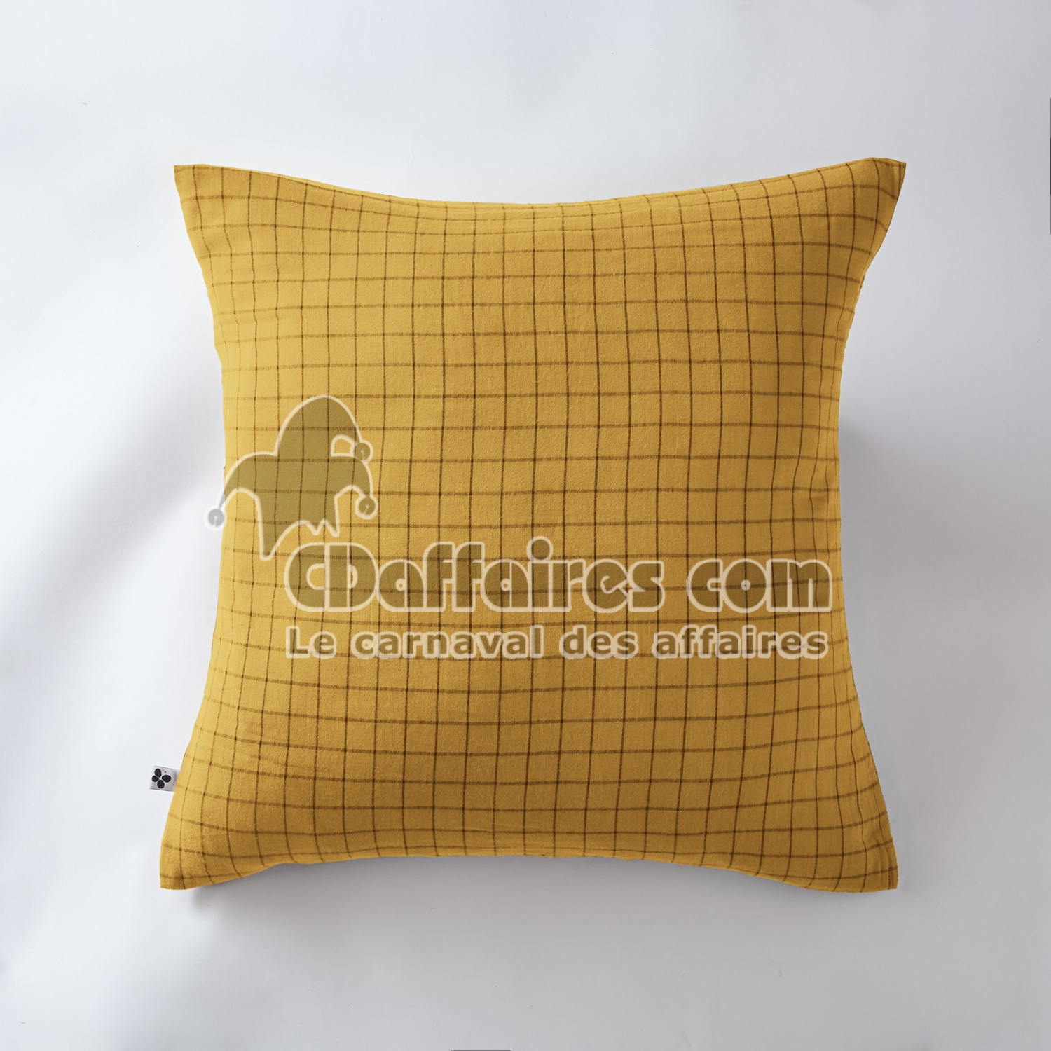 Taie d’oreiller 60 x 60 cm – Gaze de Coton Tissée – Gaïa Mix – Petits Carreaux Safran - CDAffaires