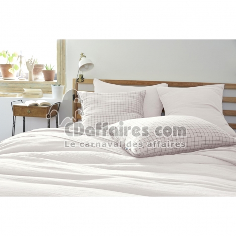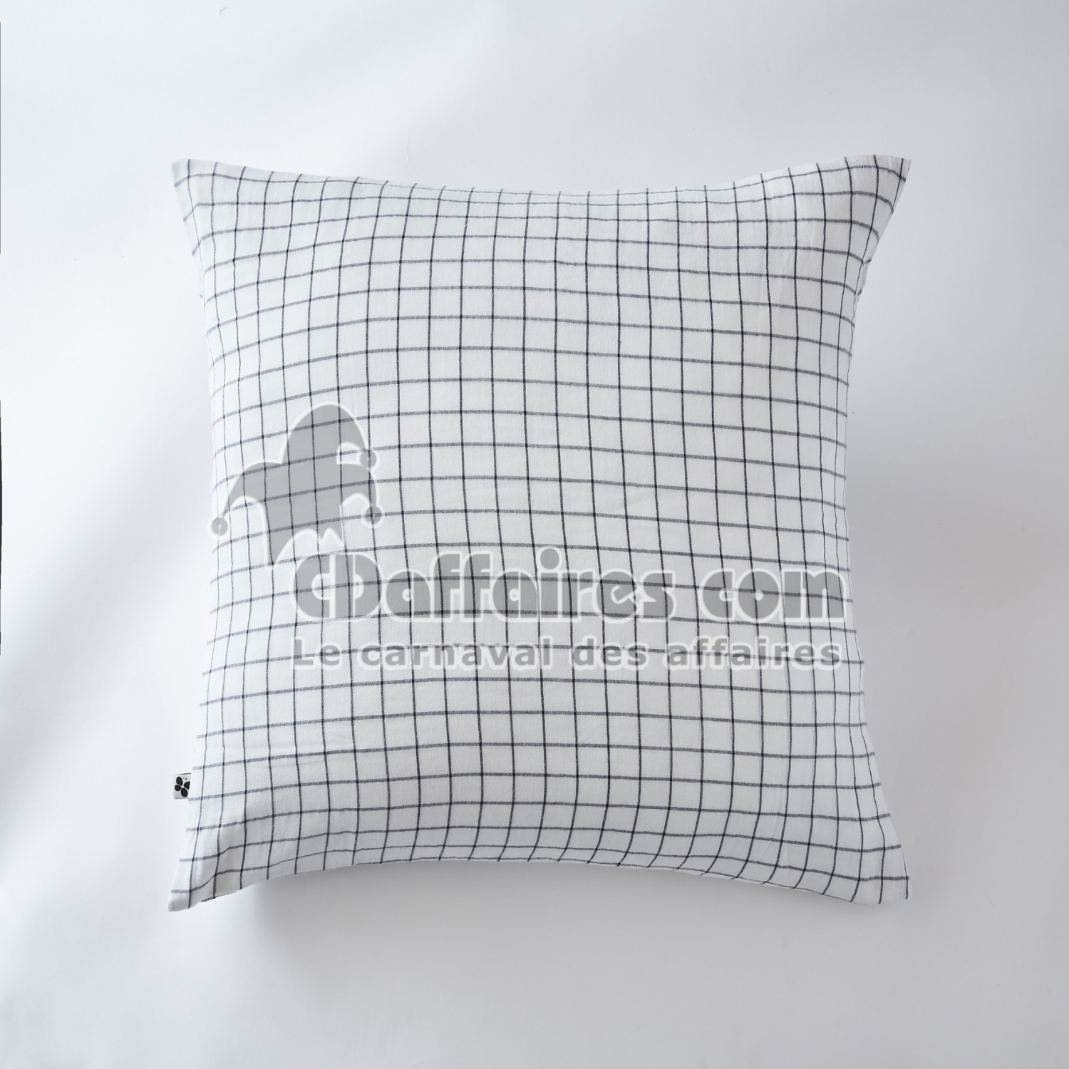 Taie d’oreiller 60 x 60 cm – Gaze de Coton Tissée – Gaïa Mix – Petits Carreaux Blanc - CDAffaires