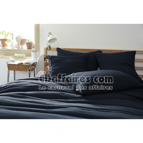 Taie d’oreiller 60 x 60 cm – Gaze de Coton Tissée – Gaïa Mix – Petits Carreaux Minuit - CDAffaires