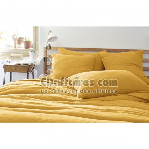 Taie d’Oreiller Brodée 60 x 60 cm – Gaze de Coton – Gaïa Boho Safran - CDAffaires