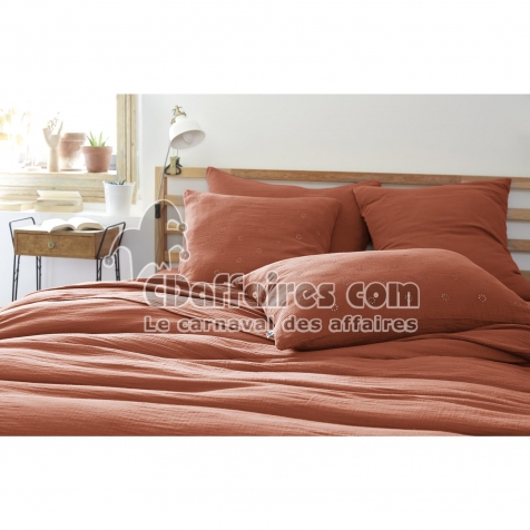 Taie d’Oreiller Brodée 60 x 60 cm – Gaze de Coton – Gaïa Boho Terracotta - CDAffaires
