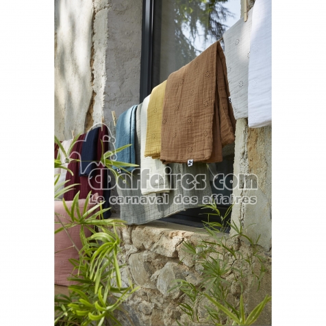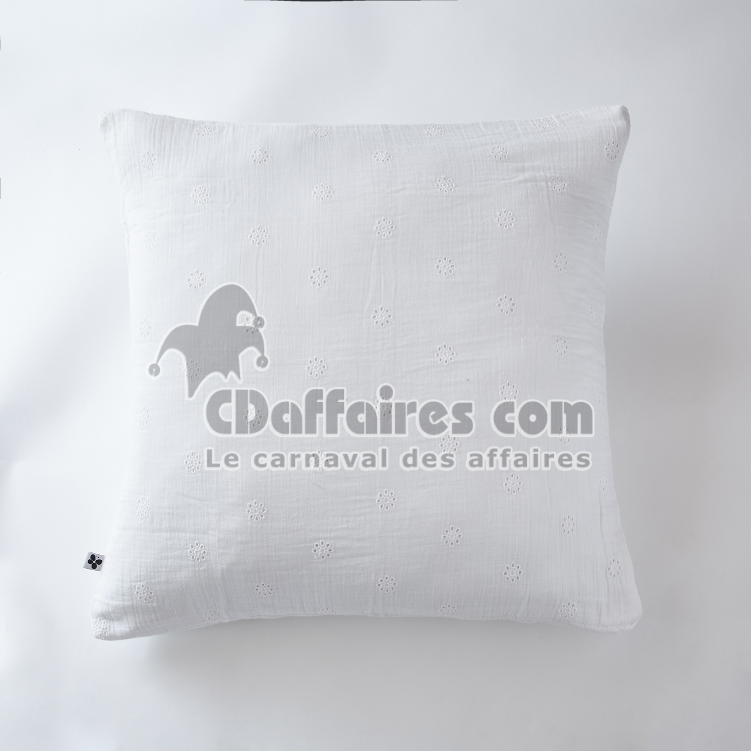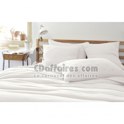 Taie d’Oreiller Brodée 60 x 60 cm – Gaze de Coton – Gaïa Boho Blanc - CDAffaires