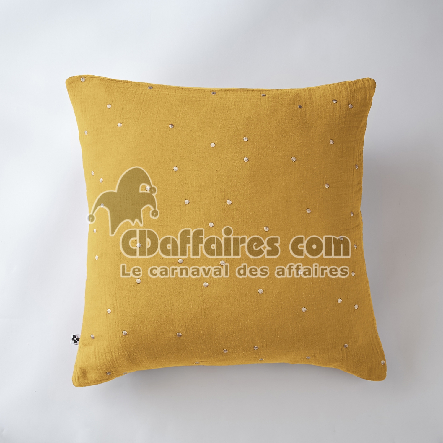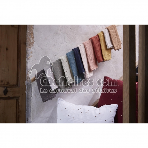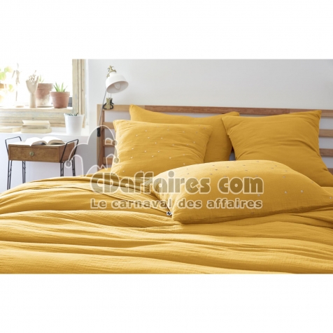 Taie d’Oreiller 60 x 60 cm – Gaze de Coton Brodée Fil Or – Gaïa Chic Safran - CDAffaires