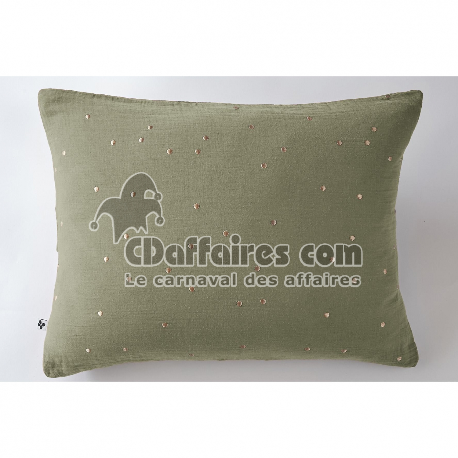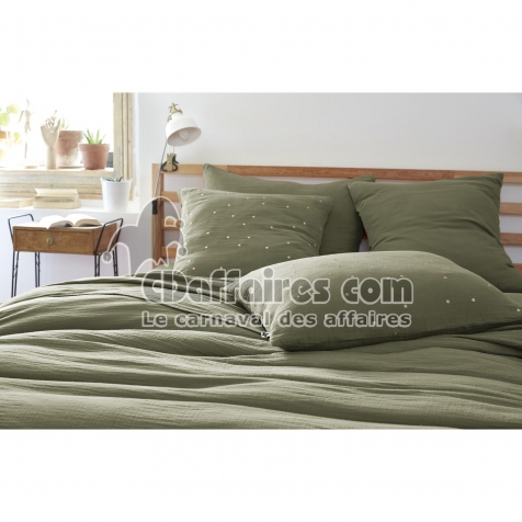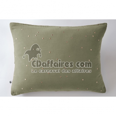 Taie d’Oreiller 50 x 70 cm – Gaze de Coton Brodée Fil Or – Gaïa Chic Romarin - CDAffaires