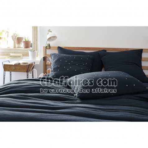 Taie d’Oreiller 50 x 70 cm – Gaze de Coton Brodée Fil Or – Gaïa Chic Minuit - CDAffaires