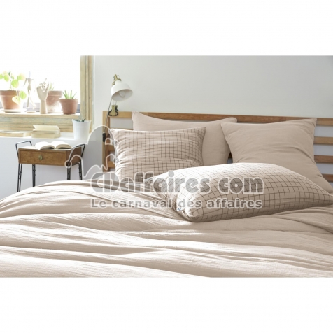 Taie d’oreiller 60 x 60 cm – Gaze de Coton Tissée – Gaïa Mix – Petits Carreaux Pampa - CDAffaires