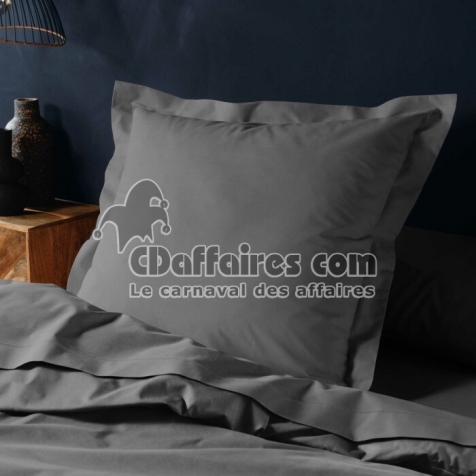 Taie d’oreiller 63 x 63 cm coton 57 fils Lina Anthracite – Volant plat avec point bourdon - CDAffaires