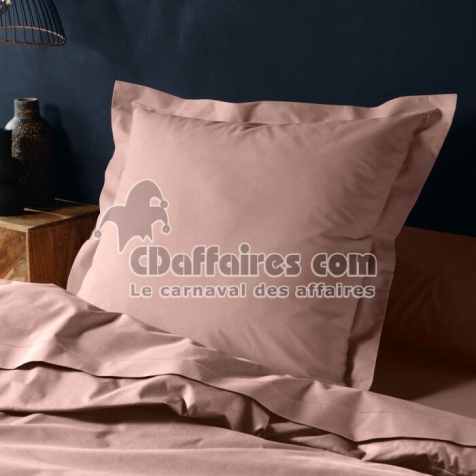 Taie d’oreiller 63 x 63 cm coton 57 fils Lina Rose – Volant plat avec point bourdon - CDAffaires