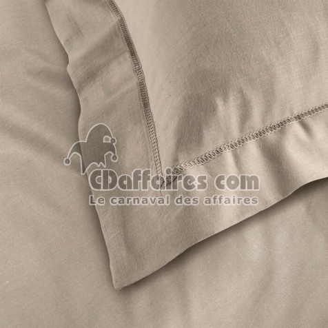 Taie d’oreiller 63 x 63 cm coton 57 fils Lina Sable – Volant plat avec point bourdon - CDAffaires