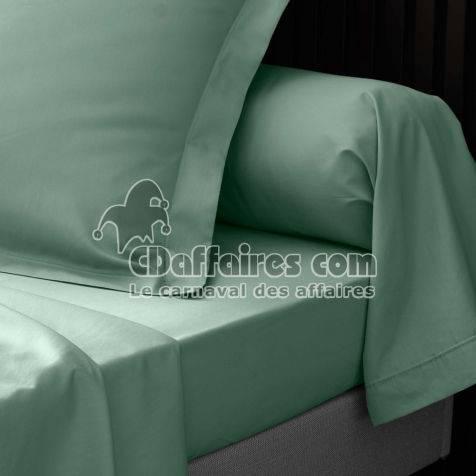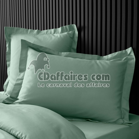 Taie d’oreiller volant plat – 50 x 70 cm – percale unie 78 fils – point bourdon –Tilleul - CDAffaires