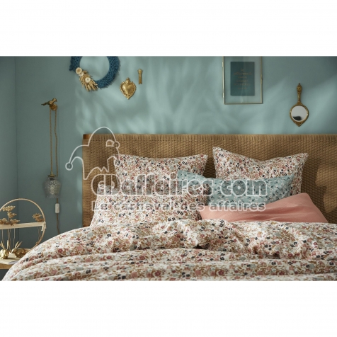 L’imprimé CAPUCINE Pampa met en scène de petits bouquets colorés dans des tons terracotta poudré, ocre doré, bleu clair et noir, disposés sur un fond écru lumineux qui apporte de la fraîcheur et un charme romantique à votre literie. Ce motif harmonieux s'intègre facilement dans une décoration bohème, naturelle ou plus contemporaine.