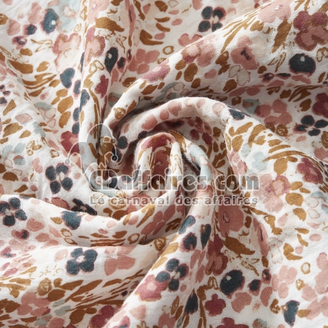 - Imprimé : Fond écru, fleurs terracotta, ocre, bleu doux et touches de noir