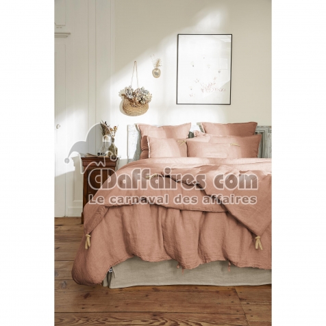 Taie d’Oreiller 60 x 60 cm – Lin Lavé Français Luxe Soline - Vieux rose - CDAffaires