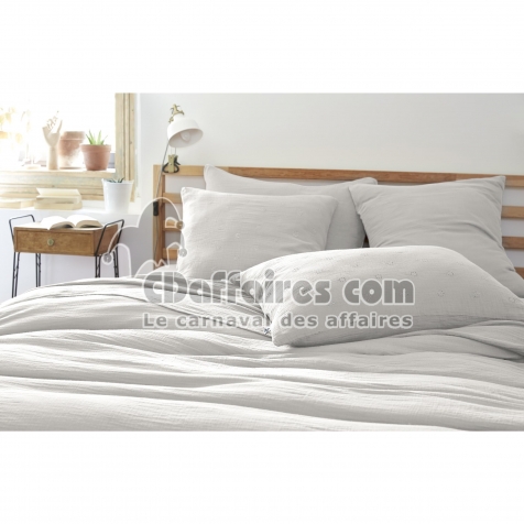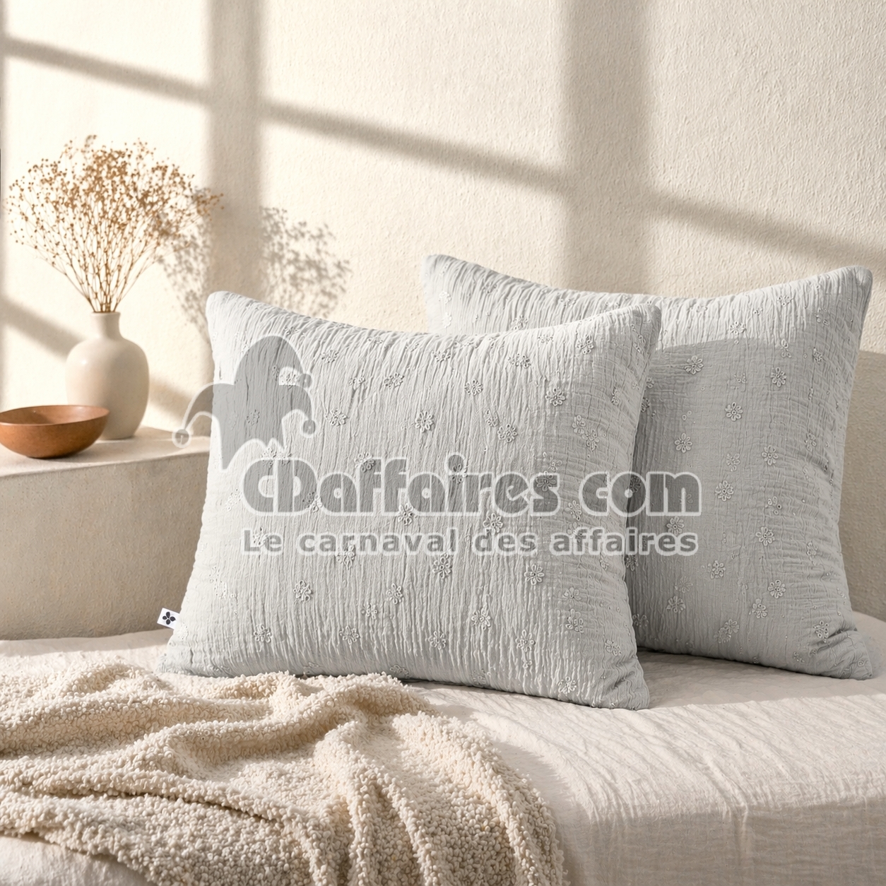 Lot de 2 Taies d’Oreiller 60 x 60 cm – Gaze de Coton Brodée – GAÏA BOHO Nuage - CDAffaires