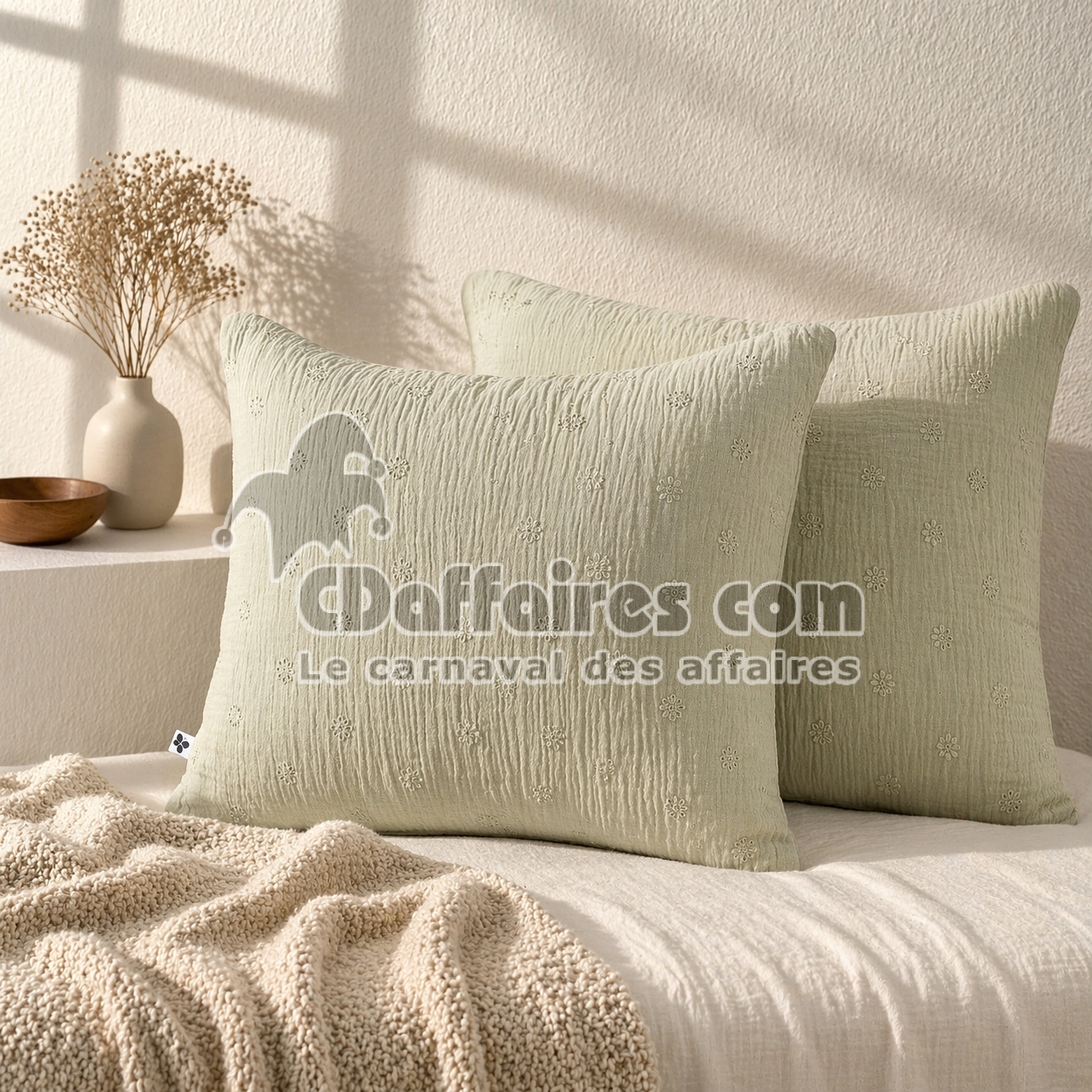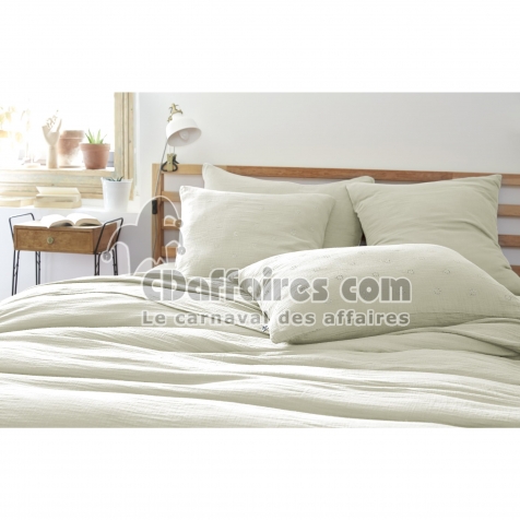 Lot de 2 Taies d’Oreiller 60 x 60 cm – Gaze de Coton Brodée – GAÏA BOHO Vert d'eau - CDAffaires