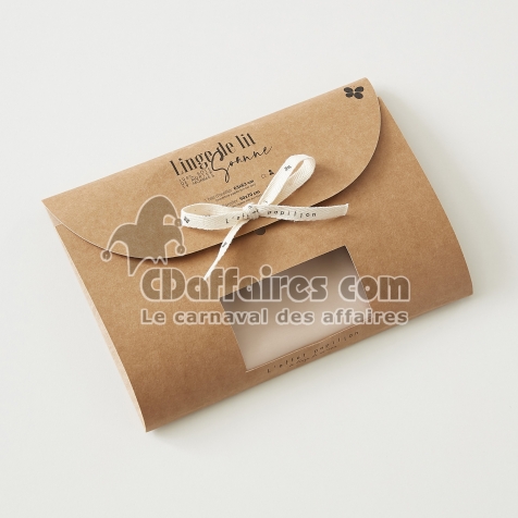 Livrée dans un emballage carton recyclable, fermé d’un joli ruban en soie, elle allie luxe, douceur et respect de l’environnement.