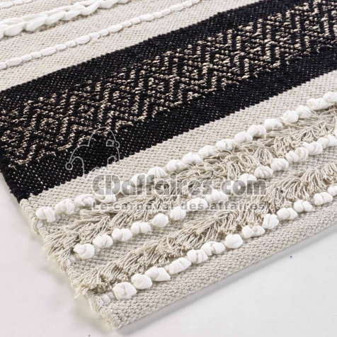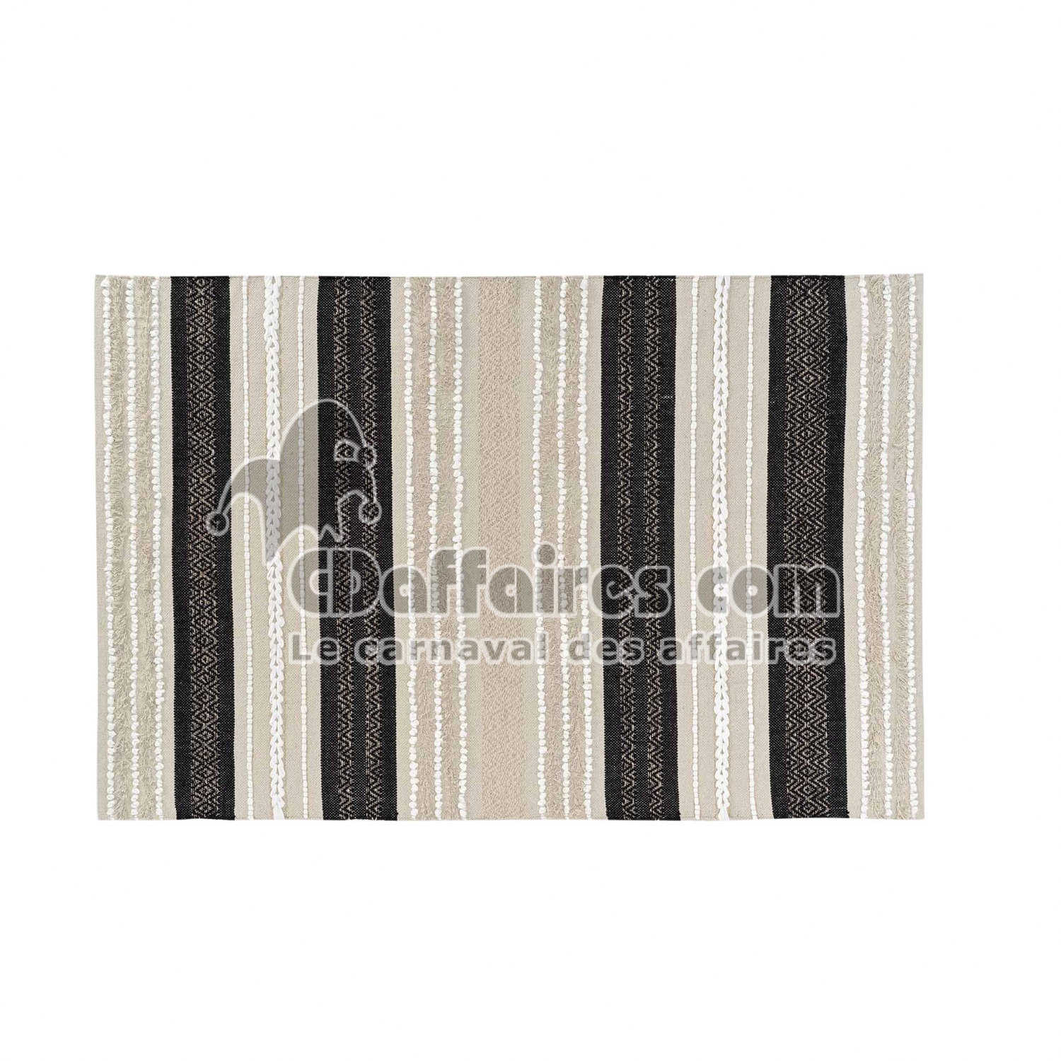 Tapis imprimés > Apportez une touche originale et artisanale à votre intérieur avec le tapis Mirage. Conçu en coton et polyester, il se distingue par ses rayures fantaisie. Taille 120 x 170 cm.