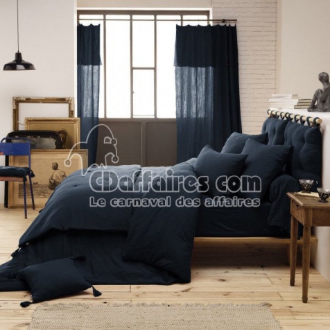 Têtes de lit > Faites de votre chambre un lieu élégant et cosy avec notre tête de lit 5 boutons avec passants gaze de coton 50 x 80 cm Bleu marine. Matière : housse 100. Taille 50 x 80 cm.