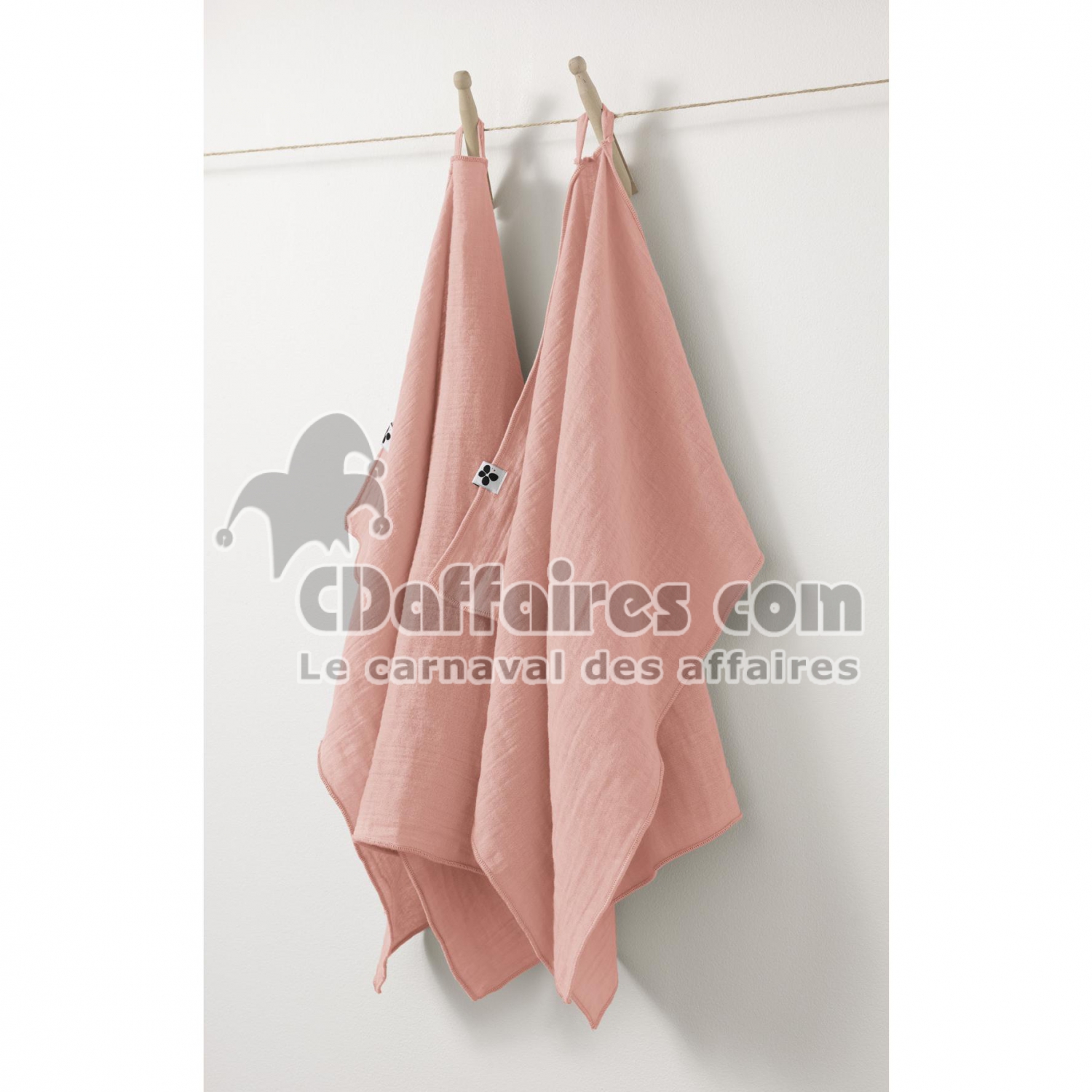 Lot de 2 Essuie-Mains 50 x 70 cm – Double Gaze de Coton – GAÏA – Rose pêche - CDAffaires