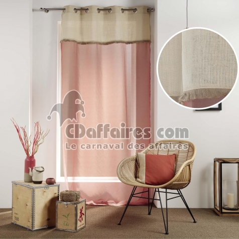 Voilage à œillets 140 x 240 cm – Voile sablé & jute – Greenybel Terracotta - CDAffaires