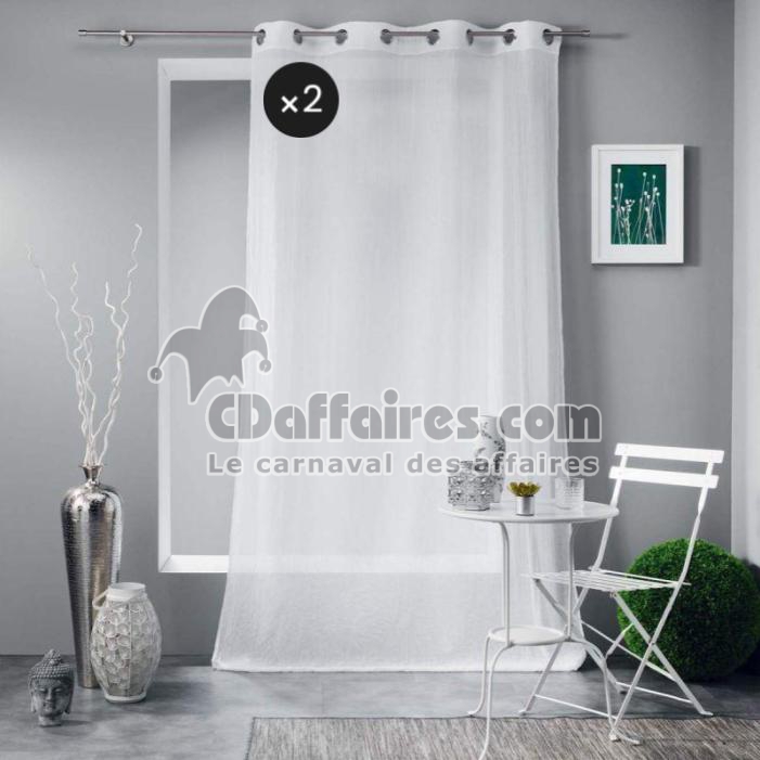 Voilages > Laissez vous tentez par ce lot de 2 voiles unis fluides et légers effet froissé en polycoton de couleur blanc pour habiller vos fenêtres toute en