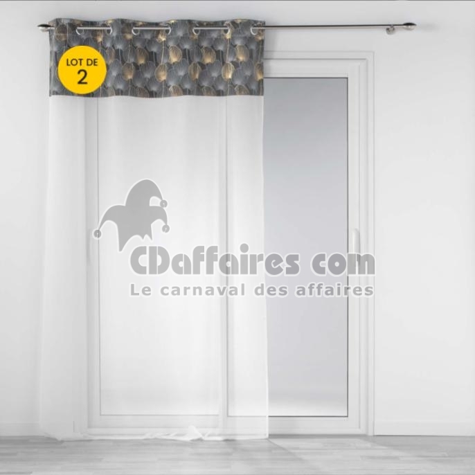 Voilages > Découvrez notre magnifique lot de 2 voilages à œillets Clairine Gris , une combinaison parfaite de voile sablé et de haut en velours, mesurant 140 x 240
