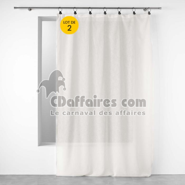 Voilages > Craquez pour notre lot de 2 voilages uni blanc en voile tissé. Taille: 140 (L) x 240 (H) cm Attache: Anneaux en métal tenus par des passants en cuir