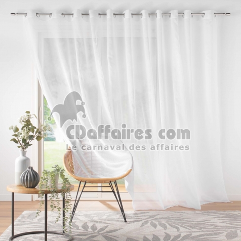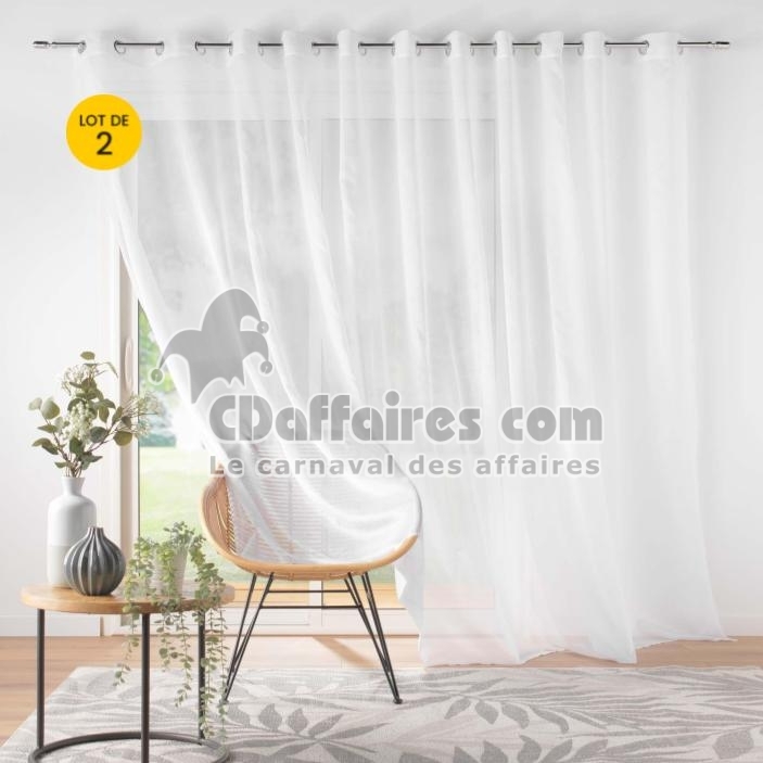 Lot de 2 voilages largeur baie vitrée 400 x 240 cm voile sablé Lissea Blanc - CDAffaires