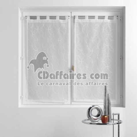 Voilages > Paire de voilage brise bise 2 x 60 x 160 cm en voile sablé blanc brodé blanc ton sur ton. Idéal pour des fenêtres de cuisine, cette paire de voilage. Taille 2 x 60 x 160 cm.
