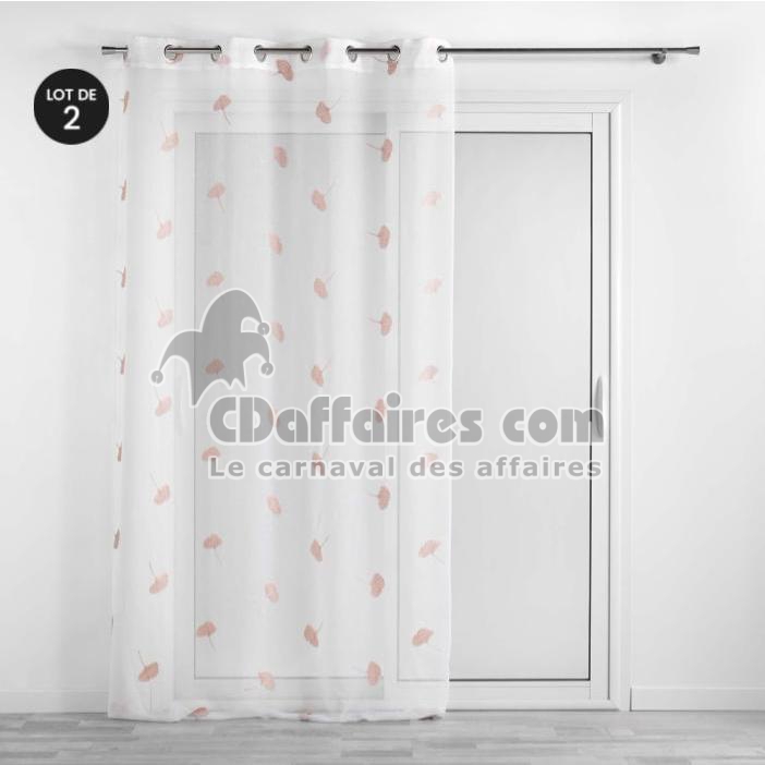 Voilages > Le voilage uni blanc en voile sablé, brodé de fleurs roses à un charme fou! Le voilage Ariella 140x240 cm est prêt à poser avec ses oeillets en métal et