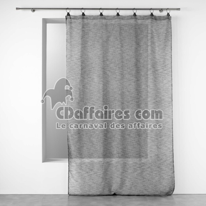 Voilages > Apportez de l'élégance et de l'originalité avec ce voilage à anneaux Linka Gris anthracite en voile tissé. voilage avec 7 anneaux noirs diamètre 4,5 cm. Taille 140 x 240 cm.