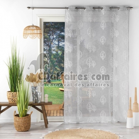 Voilage a oeillets 140 x 240 cm effet li brodé Sonata Gris - CDAffaires