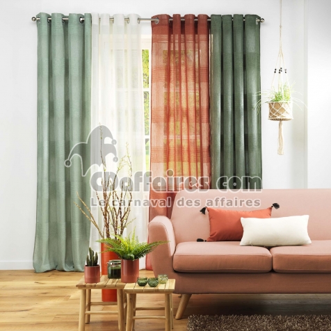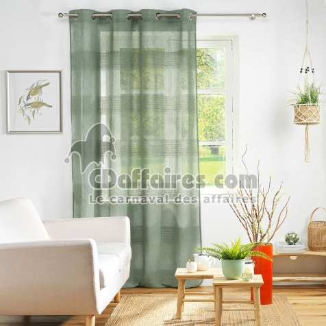 Voilage a oeillets 140 x 240 cm effet lin tisse fils chenille terraza Vert - CDAffaires