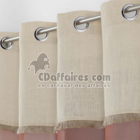 Voilages > Élégant voilage écru naturel 140 x 240 cm en voile sablé terracotta uni + haut en jute avec frange. Ce voilage clair habillera vos fenêtres avec. Taille 140 x 240 cm.