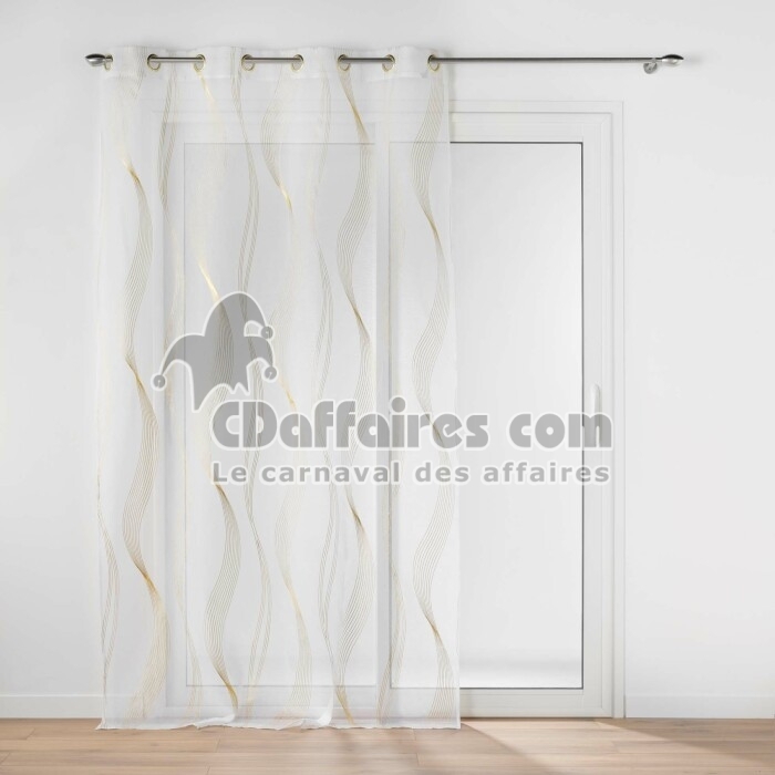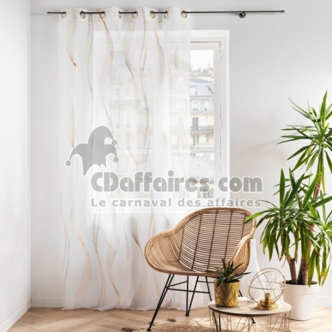 Voilages > Décorez votre intérieur avec notre voilage prêt à poser en voile sablé blanc et ses motifs métallisés couleur or. Terriblement tendance, le voilage. Taille 140 x 280 cm.