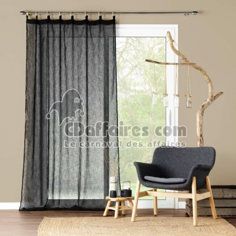 Voilage a oeillets bois 140 x 240 cm voile tissé Minalisa Noir - CDAffaires