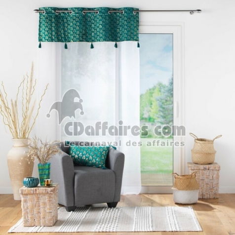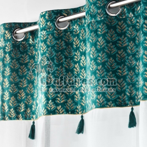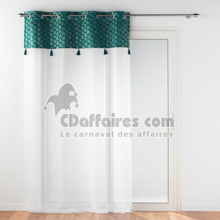 Voilage grande hauteur 140 x 280 cm voile sablé + haut velours Evie Bleu - CDAffaires